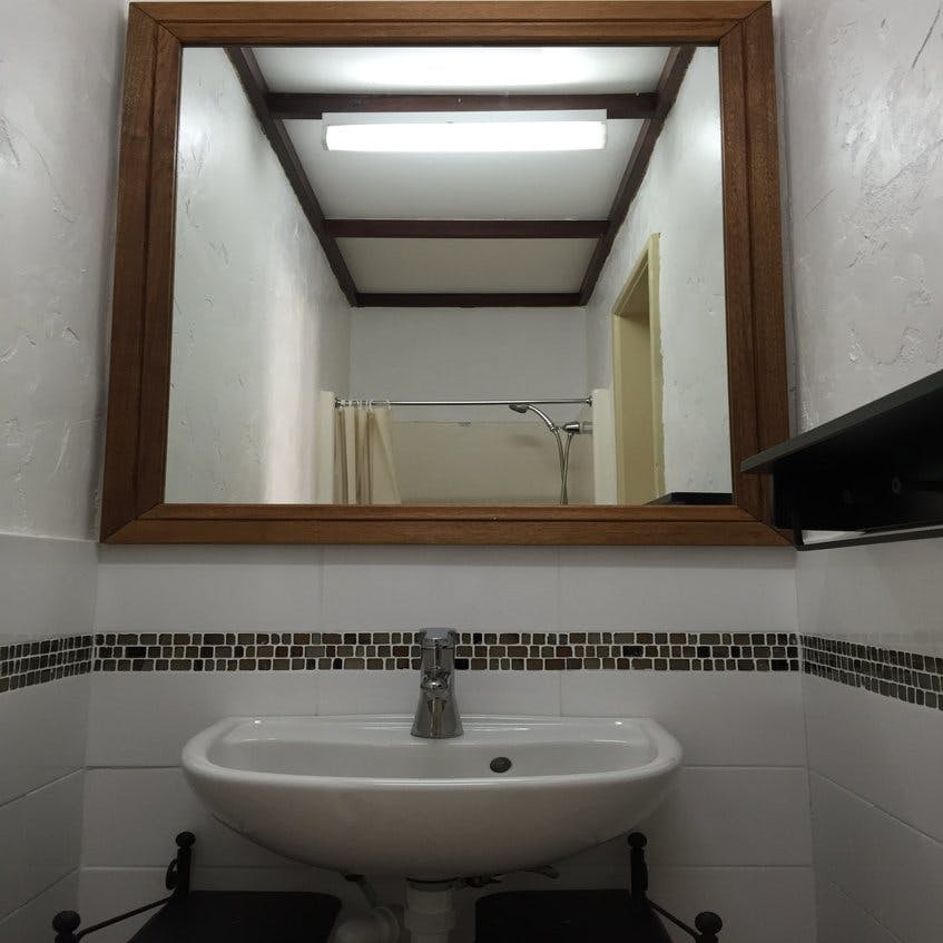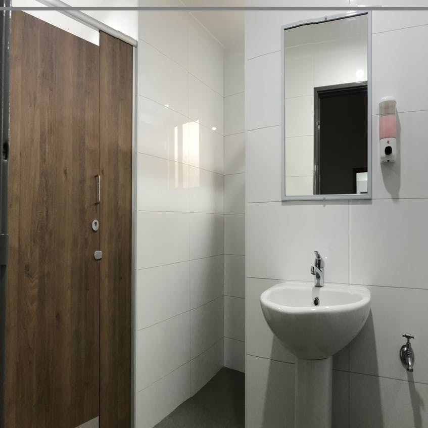 This room features a wardrobe, desk and a Air-conditioner. A private shower is located in the room with a shared toilet is right outside the room.